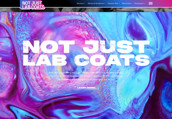 The aim was to launch an energetic but professional new website for under 25s that showcased career paths and job roles in science but also promote the peripheral and support roles that are often overlooked too.